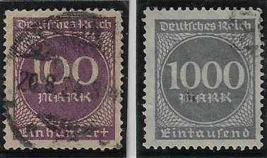 | 55901 | Reich, Mi-268 e 273, Cifras, carimbados (7 €) | 7,00 | Foto |