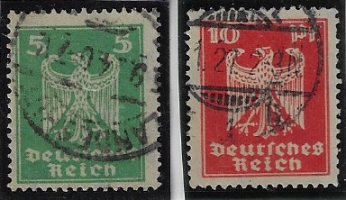 | 55905 | Reich, Mi-356/357, Águia Imperial, carimbados (1 €) | 5,00 | Foto |