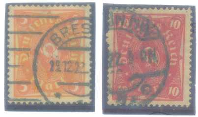 | 55902 | Reich, Mi-284 e 290, Tipos Sobrestampado, carimbados (7 €) | 5,50 | Foto |