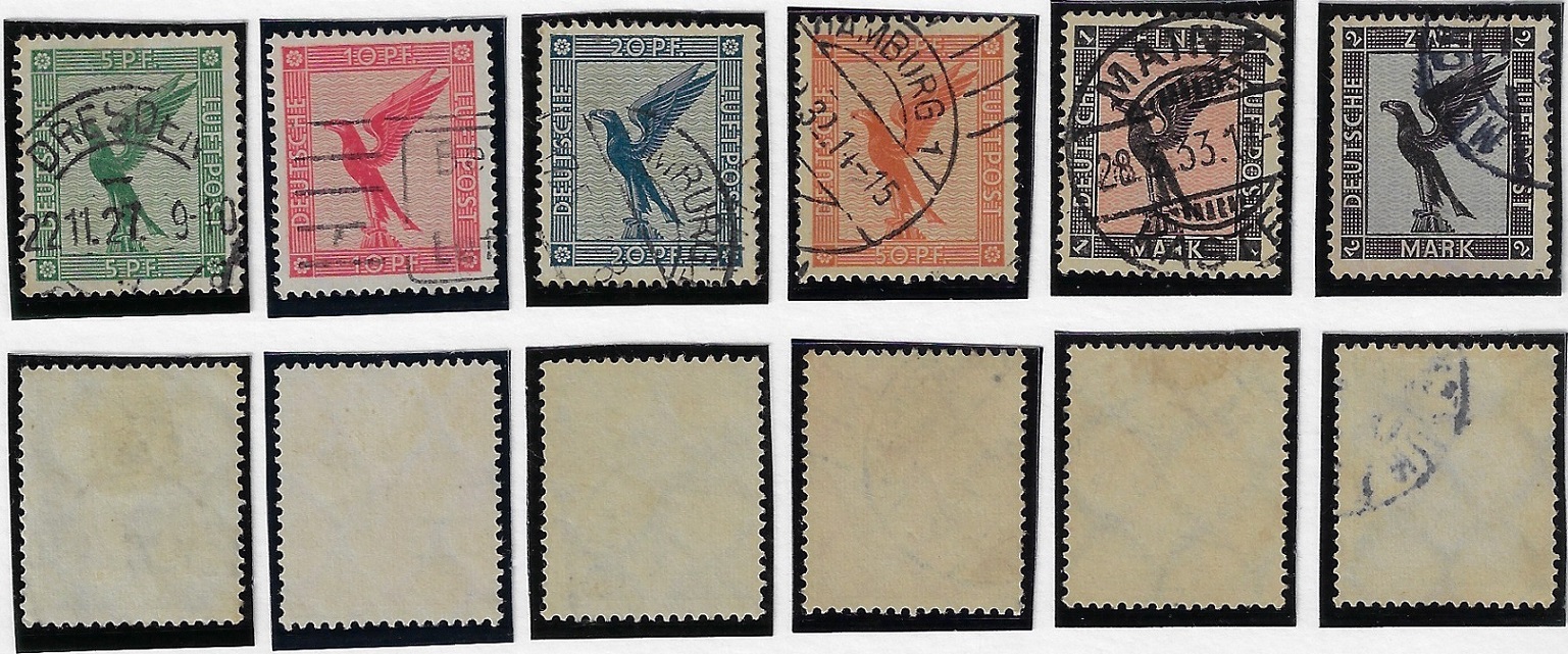 | 54475 | Reich, Mi-529/539, Águias, Lilienthal e Zeppelin, carimbados (224 €) | 162,00 | Foto |