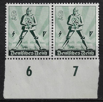 | 56400 | Reich, 1940, YT-669, Dia do Trabalho, Cavaleiro, 6+4 Pfennig, margem inferior da folha, numerada, sem uso, sem goma | 6,00 | Foto |