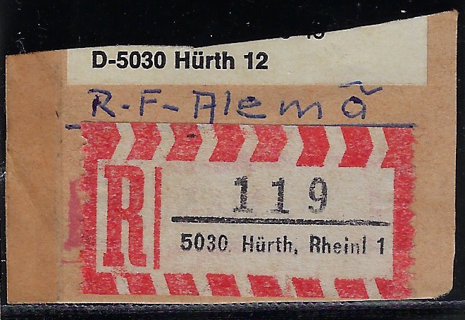 | 79398 | Ocidental, etiqueta de registro da cidade de 5030 Hürth, Rheinl 9 | 10,00 | Foto |
