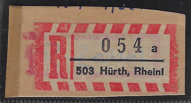 | 58946 | Ocidental, etiqueta de registro da cidade de 5030 Hürth, Rheinl 1 | 10,00 | Foto |