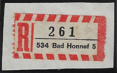| 69787 | Ocidental, etiqueta de registro da cidade de 534 Bad Honnef | 10,00 | Foto |