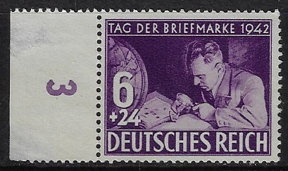 | 70566 | Reich, 1942, YT-735, Dia do Selo, Colecionador com álbum, 6+24 Pfennig, margem da folha, numerada, sem uso, sem goma | 4,00 | Foto |