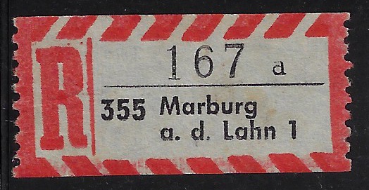 | 80073 | Ocidental, etiqueta de registro da cidade de Marburg an der Lahn | 10,00 | Foto |