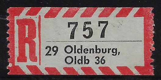 | 80156 | Ocidental, etiqueta de registro da cidade de 29 Oldenburg, Oldb 36 | 10,00 | Foto |