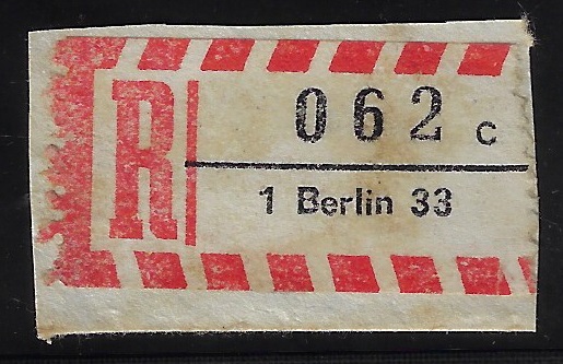 | 80265 | Ocidental, etiqueta de registro da cidade de 1 Berlin 33 | 10,00 | Foto |