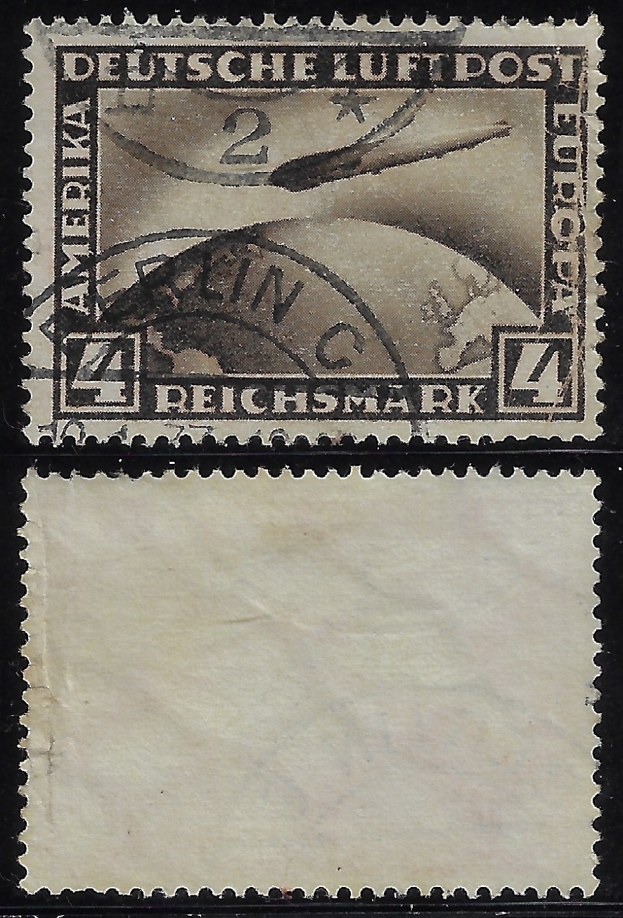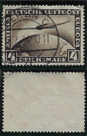 | 80414 | 1934, Correio Aéreo Zeppelin, 4 DM, carimbo Berlin, pequeno corte (2ª escolha) | 50,00 | Foto |