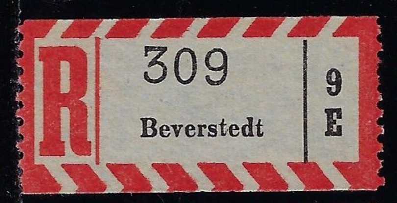 | 81563 | Ocidental, etiqueta de registro da cidade de Beverstedt (brasão da cidade é um Castor - Biber) | 10,00 | Foto |