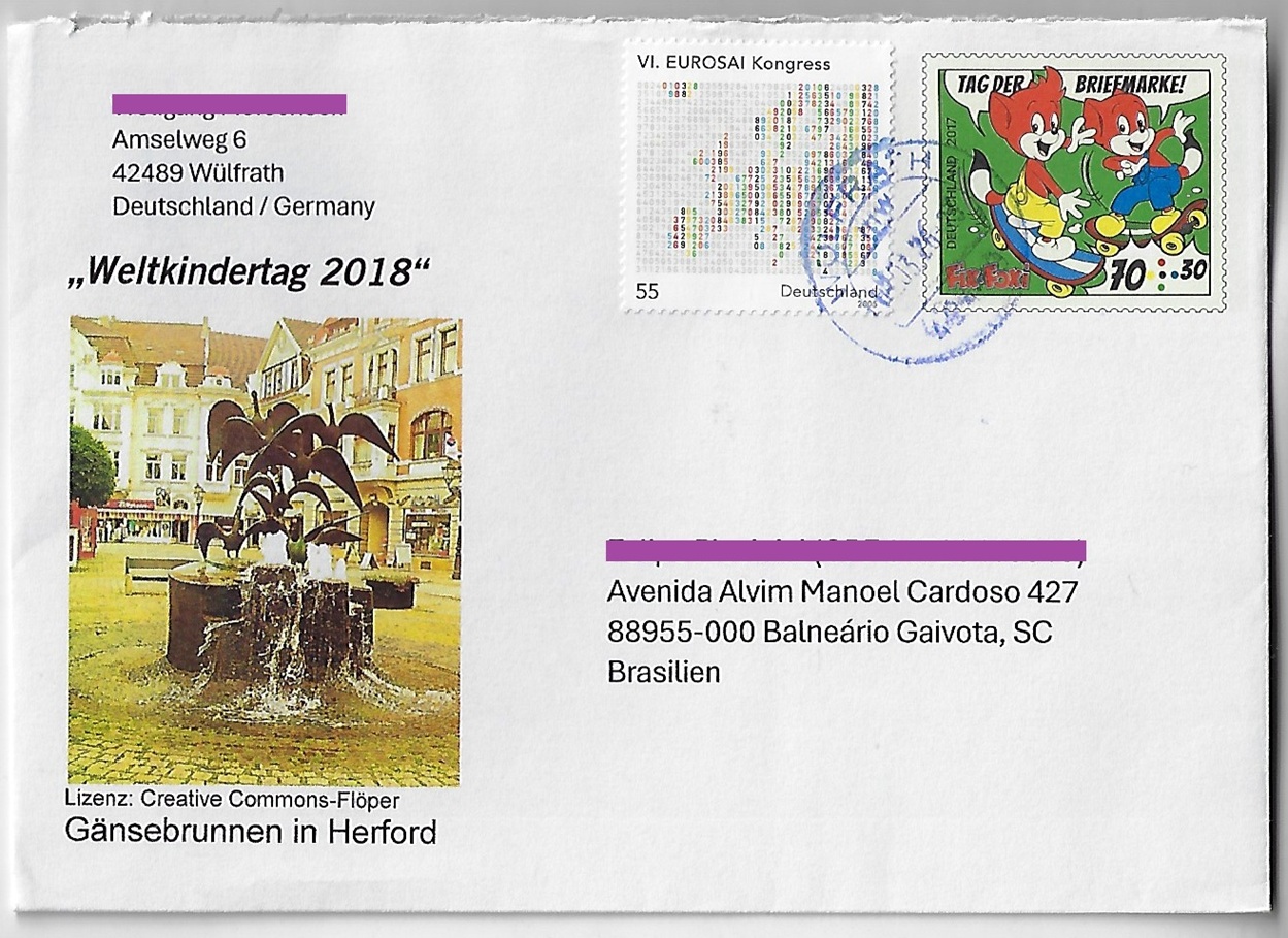 | 47578 | Oriental, 1978, envelope aéreo enviado de Gräfenhainichen para Brusque, 4 selos Dia Mundial das Telecomunicações e Uniformes, marca de triagem eletrônica Transorma "AX" | 20,00 | Foto |