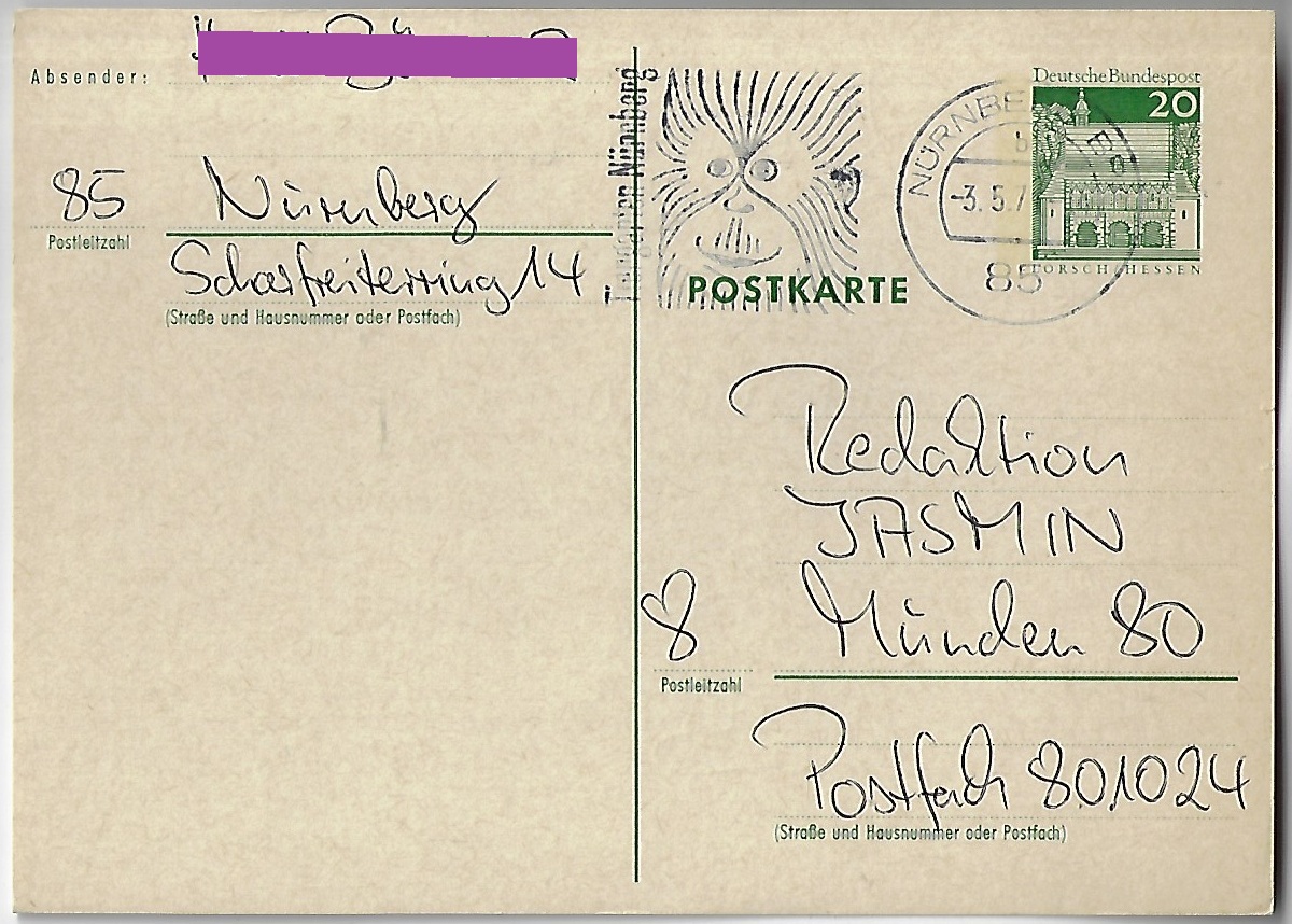 | 68799 | Oriental, 1984, inteiro postal tipo envelope enviado com registro e via expressa enviado de Wermsdorf (28/9) para Stuttgart (2/10), 3 selos impressos diferentes da série Castelos, etiqueta alusiva a Feira Internacional de Selos Philatelia 84 | 10,00 | Foto |