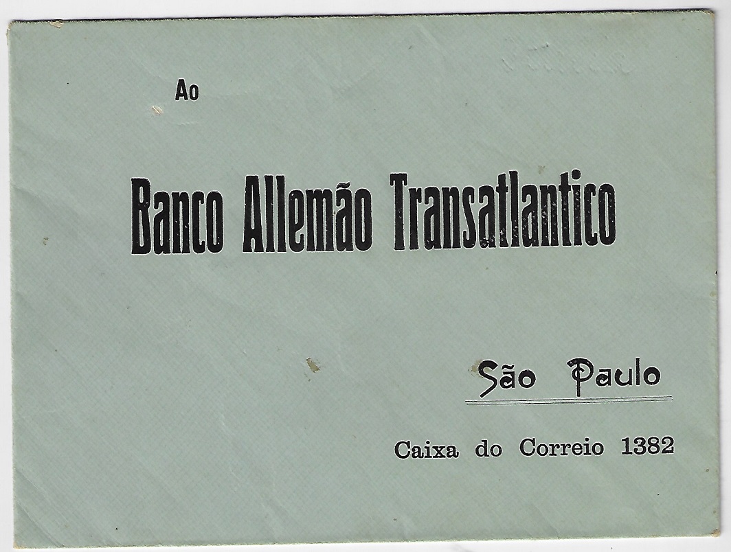 | 40071 | Brasil, 1930s, Envelope resposta para o Banco Alemão Transatlântico, em São Paulo | 6,00 | Foto |
