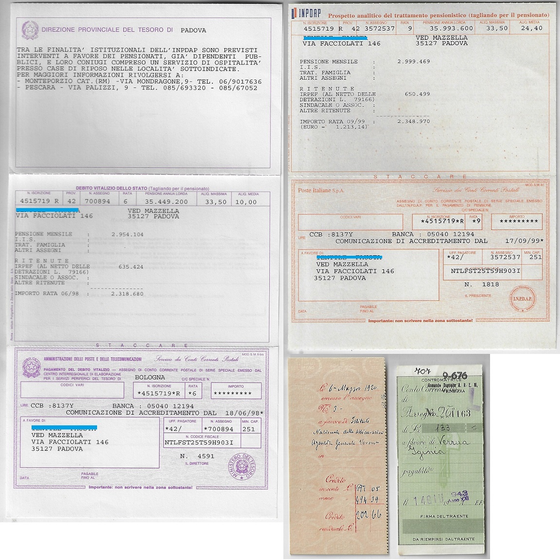 | 52652 | Itália, 1998/1999, 2 formulários de Comunicação de Crédito de Pensão em Conta Corrente Postal + 1920/1943, 2 canhatos de cheque de Conta Corrente Postal | 20,00 | Foto |