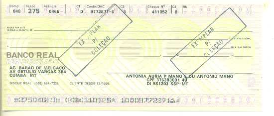 | 58917 | Brasil, 1990s, cheque do Banco Real, valor em R$, sem uso | 5,00 | Foto |