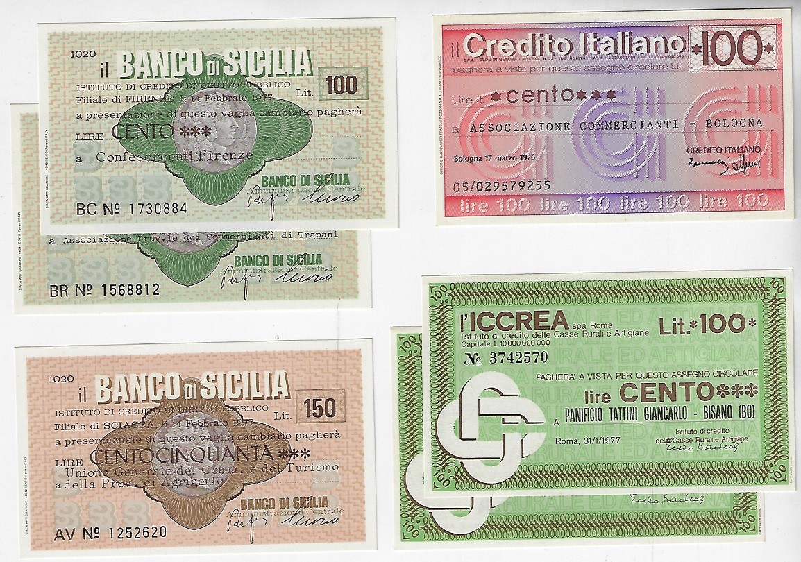 | 58956 | Itália, 1976/1977, 6 vales de Instituições Bancárias, sendo 4 diferentes, todas FE | 50,00 | Foto |