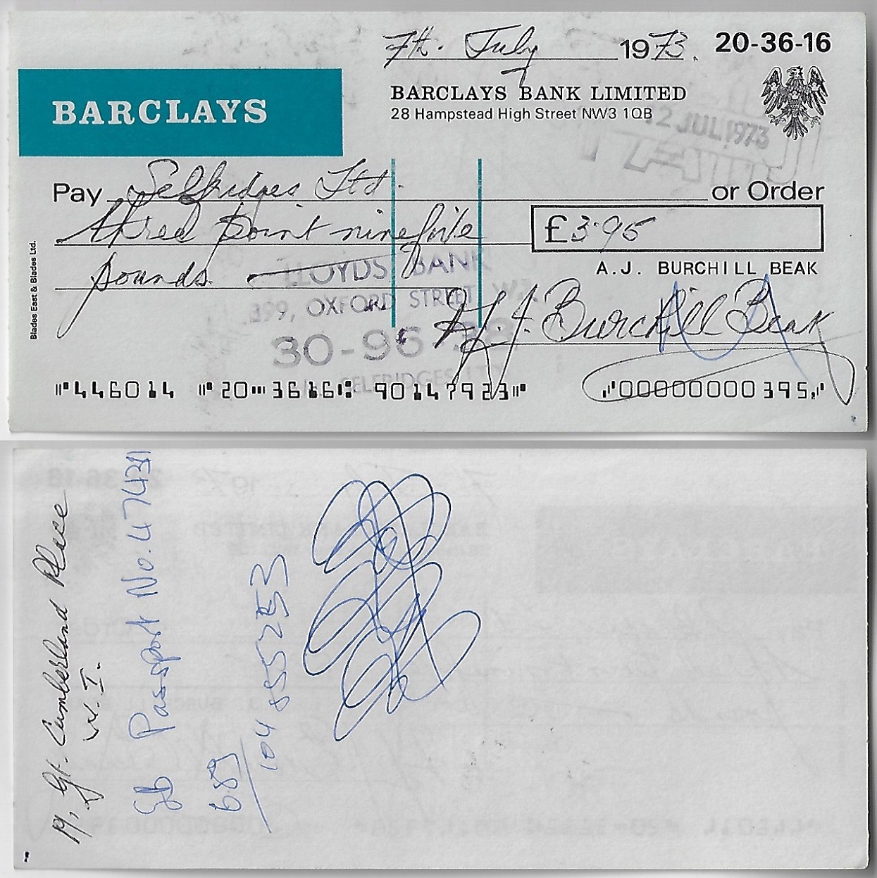 | 58957 | Grã-Bretanha, 1973, cheque do Barclays Bank, usado | 5,00 | Foto |