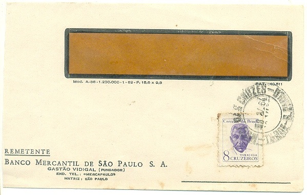 | 61702 | Brasil, 1964, envelope timbrado circulado do Banco Mercantil de São Paulo | 3,00 | Foto |