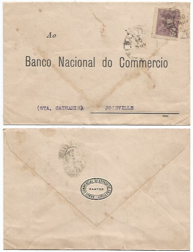 | 74480 | Brasil, 1920s, envelope timbrado do Banco Comercial do Estado de São Paulo com resposta para o Banco Nacional do Comércio, selo Vovó 150 Réis | 6,00 | Foto |