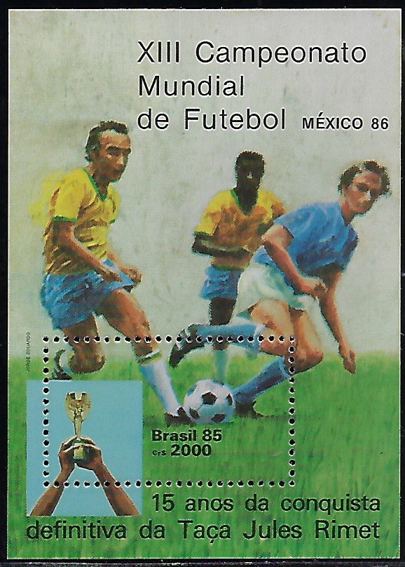 | 41954 | 70, XIII Campeonato Mundial de Futebol no México 1986 e 15 anos da Conquista Definitiva da Taça Jules Rimet, novo com goma plena (10 UF) | 10,00 | Foto |