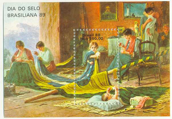 | 41964 | 76, Brasiliana 89 - Dia do Selo - Bandeira, pintura "A Pátria", de Pedro Bueno, novo com goma plena (7 UF) | 7,00 | Foto |