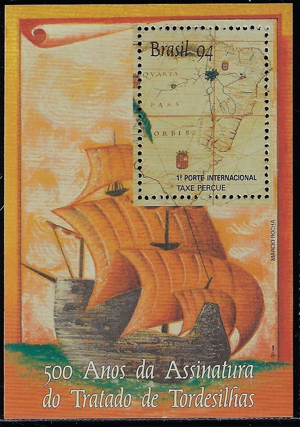 | 41974 | 97, Tratado de Tordesilhas - Caravela - Mapa, novo com goma esverdeada (6 UF) | 9,00 | Foto |