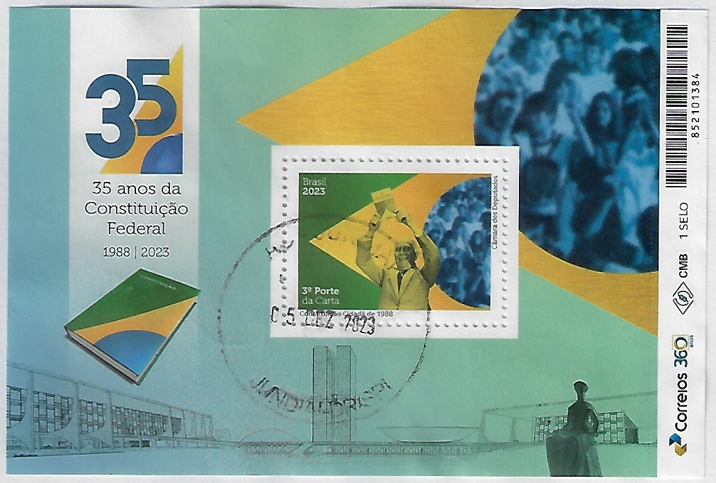 | 42772 | 2??, 35 Anos da Constituição Federal, Praça dos 3 Poderes, em Brasília, Bandeira, Deputado Federal Ulysses Guimarães, usado | 5,00 | Foto |