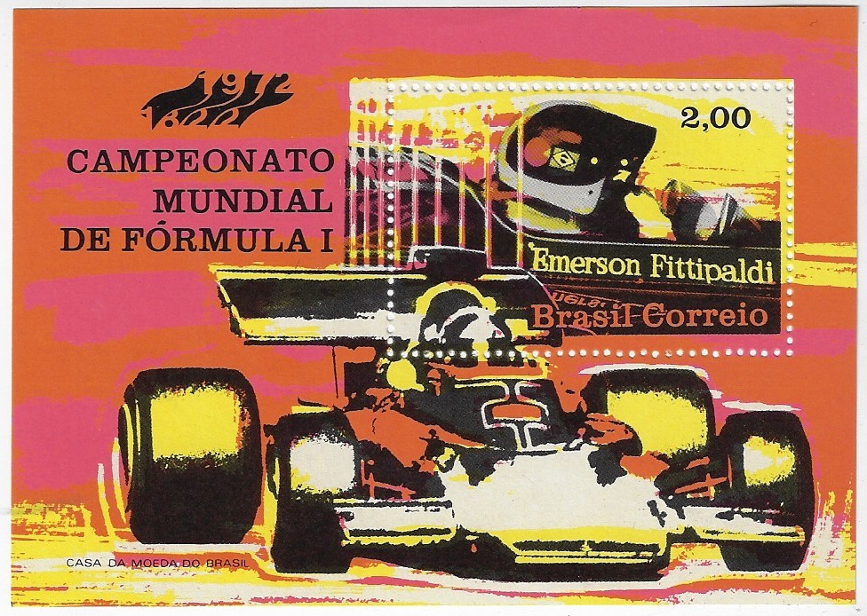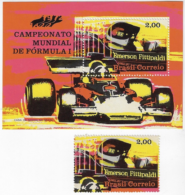 | 51408 | 33, Campeonato Mundial de Pilotagem Fórmula 1, vencido por Emerson Fittipaldi, acompanha selo destacado do bloco C-758, sem uso, emitido sem goma (34 UF) | 34,00 | Foto |