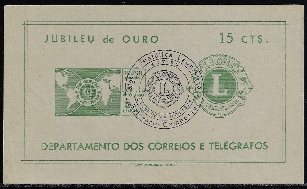 | 65706 | 21, Jubileu de Ouro do Lions Club International, carimbo da Mostra Filatélica Leonística, de 1974 | 18,00 | Foto |