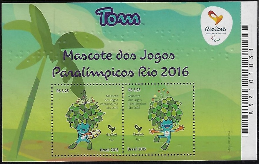 | 81562 | 188, Mascote dos Jogos Paralímpicos Rio 2016, escrita em Braille, Cegueira, mint (8 UF) | 10,00 | Foto |