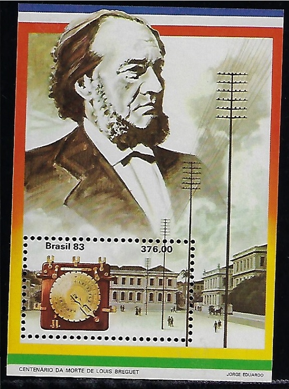| 83451 | 64, Centenário da morte de Louis Breguet, inventor do telégrafo elétrico de mostrador, novo com goma plena (14 UF) | 14,00 | Foto |