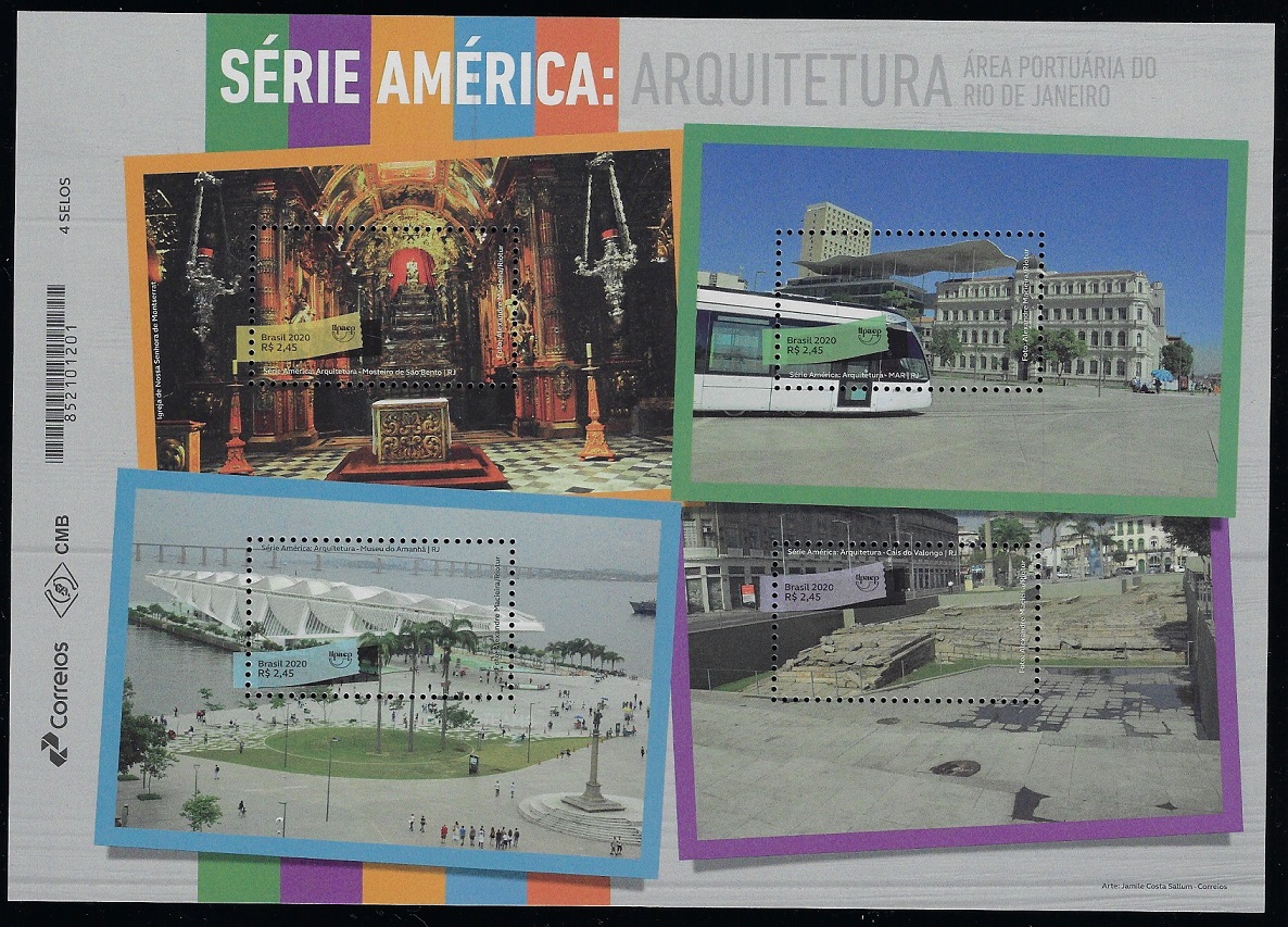 | 83720 | 2020, bloco Série América: Arquitetura, Área Portuária do Rio de Janeiro, mint | 26,00 | Foto |