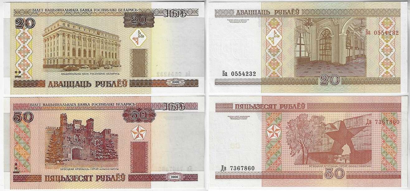 | 57224 | Bielorrússia, 20 e 50 Rublos, 2000, Pick-24/25, ambas FE (catálogo US$2,5) | 14,00 | Foto |