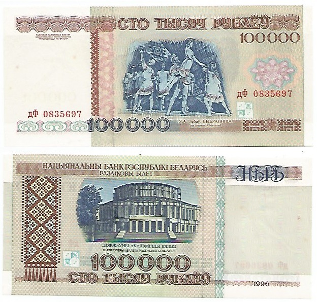 | 57322 | Bielorrússia, 100.000 Rublos, 1996, Pick-15, FE com leves pontos amarelados | 26,00 | Foto |