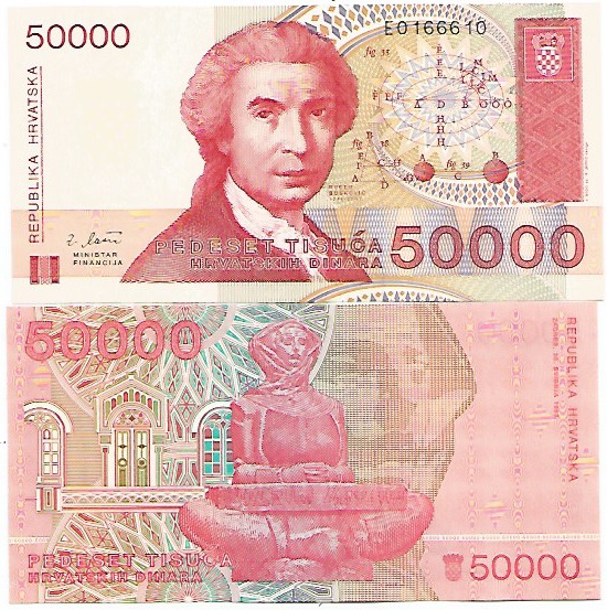 | 57392 | Croácia, 50.000 Dinares, 1993, Pick-26, FE | 14,00 | Foto |