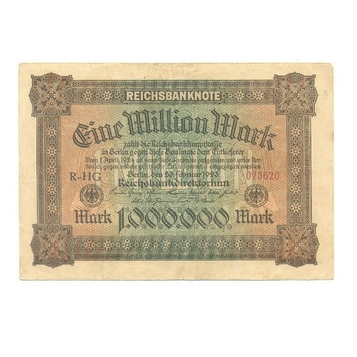 | 61099 | Alemanha, 1.000.000 Marcos, 1923, Pick-86a, unifacial, MBC (catálogo US$10) | 40,00 | Foto |