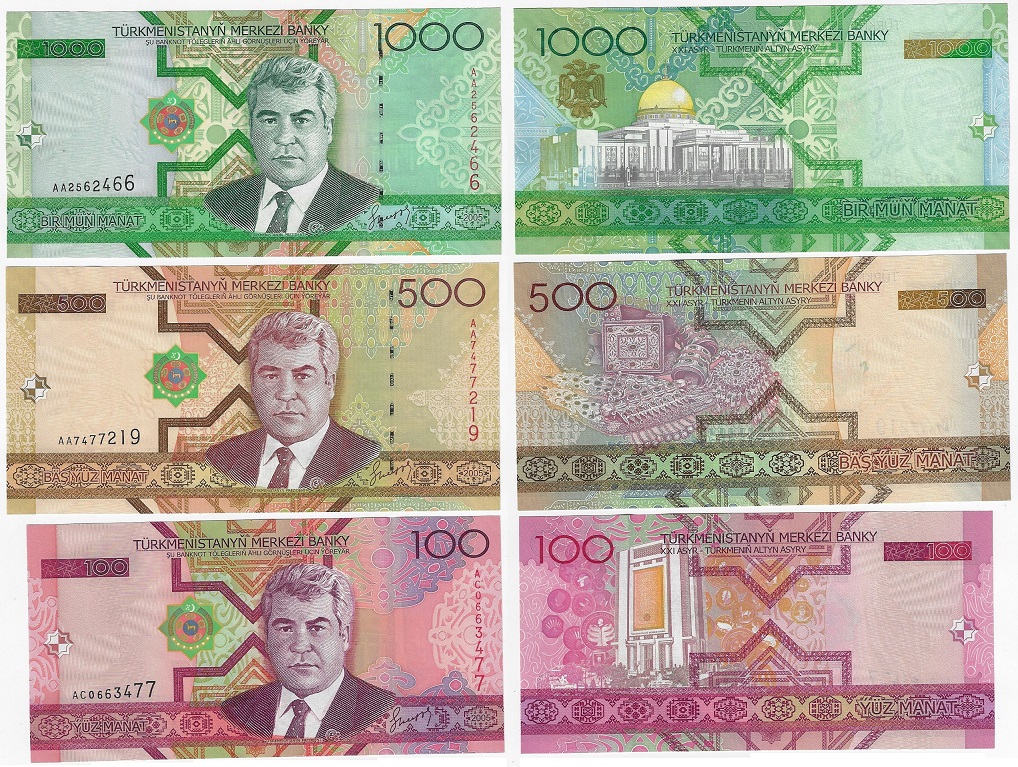 | 64167 | Turcomenistão, 100, 500 e 1.000 Manat, 2005, Pick-18/20, FE (catálogo US$15,5) | 31,00 | Foto |