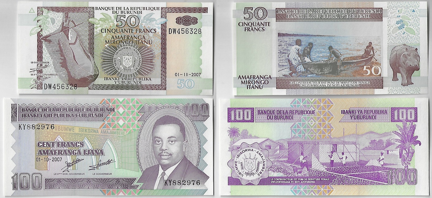 | 64677 | Burundi, 50 e 100 Francos, 2007, Pick-36g e 37f, ambas FE (catálogo US$5) | 20,00 | Foto |