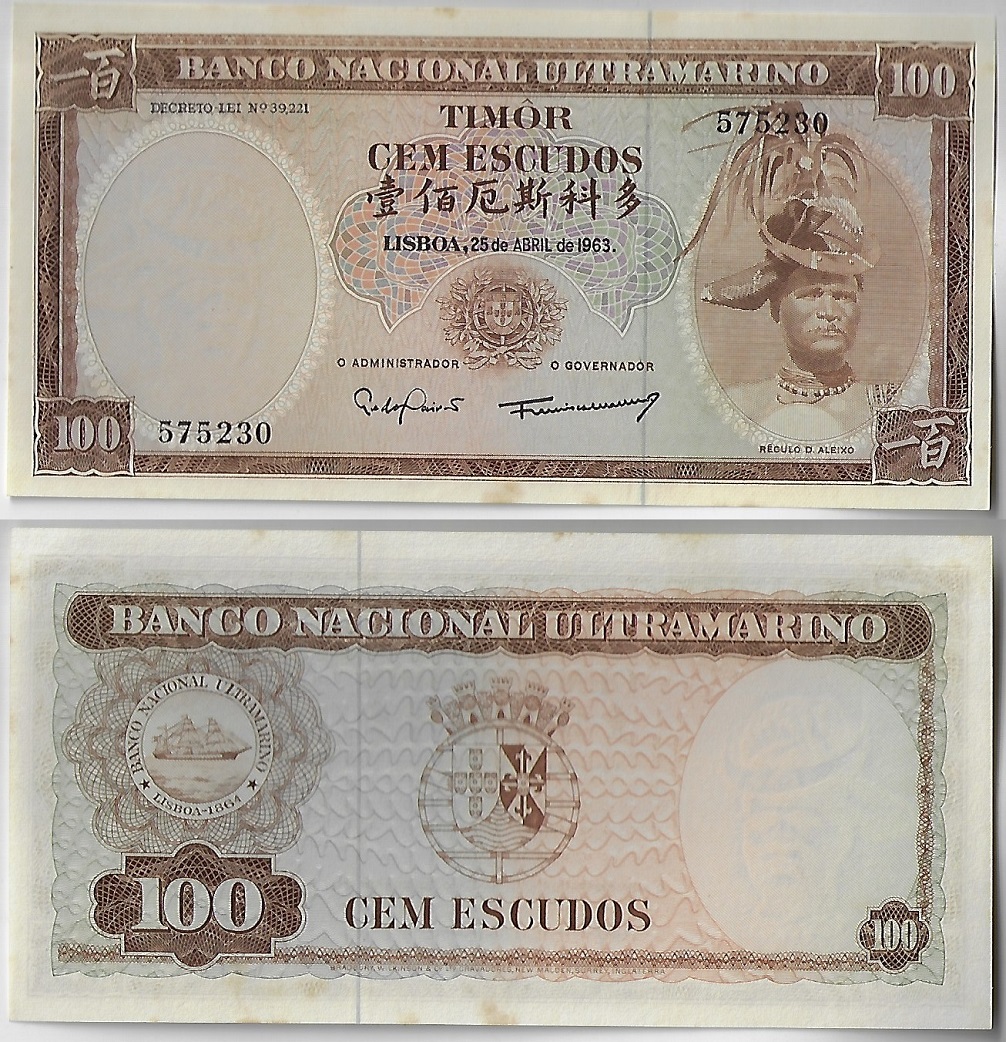 | 64908 | Timor Português, 100 Escudos, 1963, Pick-28, FE com pontos amarelados (catálogo US$15) | 60,00 | Foto |