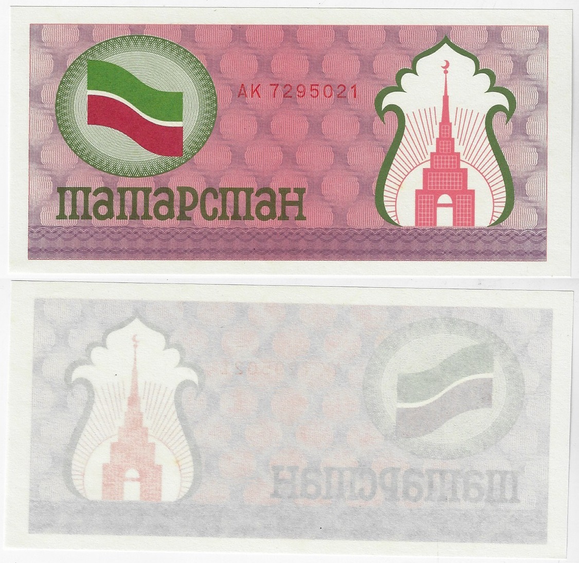 | 64909 | Tatarstão, 100 Rublos, 1993, Pick-5b, unifacial, FE (catálogo US$25) | 40,00 | Foto |