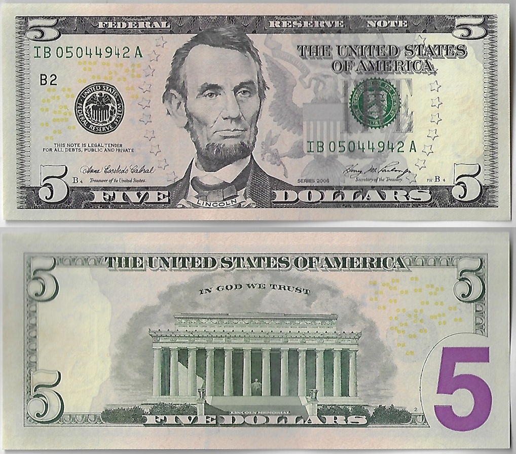 | 65364 | EUA, 5 Dollars, 2006, Pick-524, FE (catálogo US$7,5) | 40,00 | Foto |