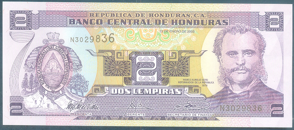 | 66569 | Honduras, 2 Lempiras, 2003, Pick-80Ad, FE | 7,00 | Foto |