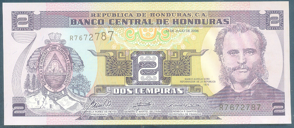 | 66570 | Honduras, 2 Lempiras, 2006, Pick-80Ae, FE | 7,00 | Foto |