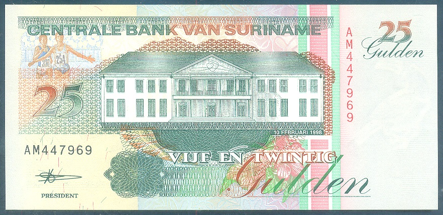 | 66603 | Suriname, 25 Gulden, 1998, Pick-138d, FE | 10,00 | Foto |