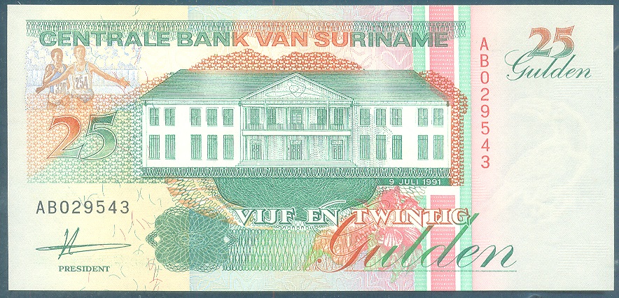 | 66604 | Suriname, 25 Gulden, 1991, Pick-138a, FE | 12,00 | Foto |