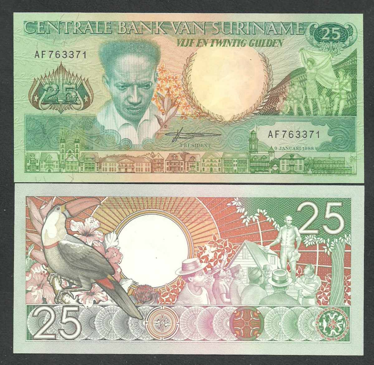 | 66606 | Suriname, 25 Gulden, 1988, Pick-132b, FE | 14,00 | Foto |