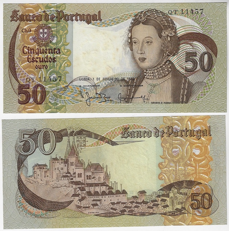 | 69238 | Portugal, 50 Escudos Ouro, 1980, Pick-174b, FE (catálogo US$16) | 64,00 | Foto |