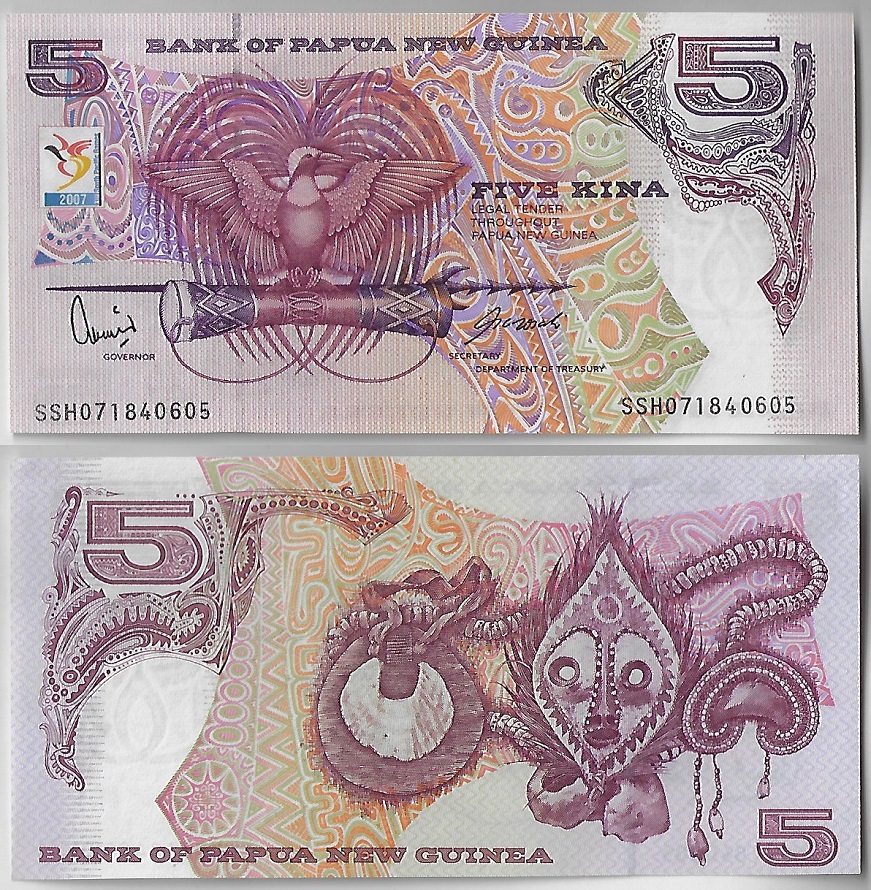 | 74256 | Papua Nova Guiné, 5 Kina, 2007, Pick-34, Ave do Paraíso e Logotipo dos XIII Jogos do Pacífico Sul, FE (catálogo US$8) | 25,00 | Foto |