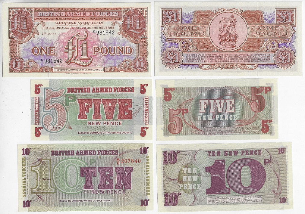 | 75989 | Grã-Bretanha, 5 e 10 New Pence e 1 Libra, 1956/1972, Pick-M-29, 47 e 48, todas FE (catálogo US$8) | 30,00 | Foto |