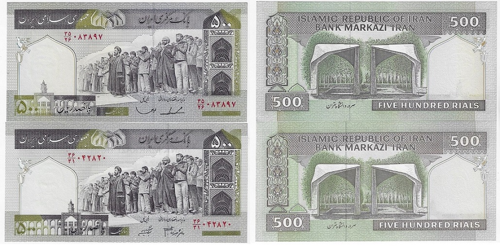 | 76967 | Irã, 500 Rials, 1982/2003, Pick-137d e 137Ad, FE | 22,00 | Foto |